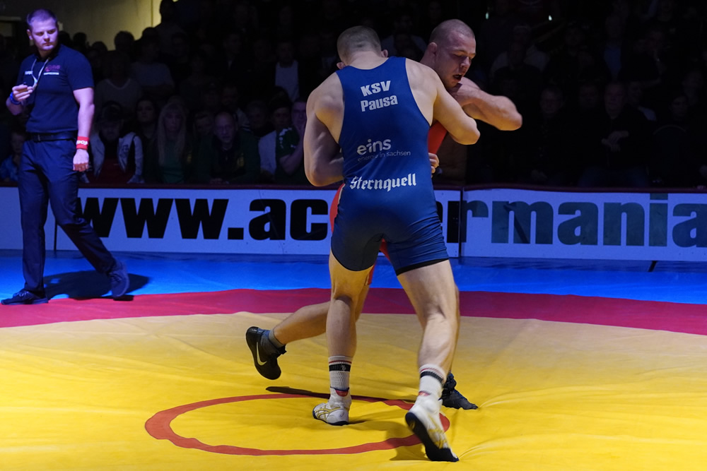 Das auch knappe Niederlagen zum Gesamterfolg beitragen können, zeigten Zhalavdi Sokuev (61 kg/GR) und Carl Hocke (71 kg/GR), die nur knapp gegen ihre Kontrahenten Jack Eisenhardt und Andre Günter unterlagen, wobei sie in beiden Duellen nur drei Zähler an die Gastgeber abgaben.