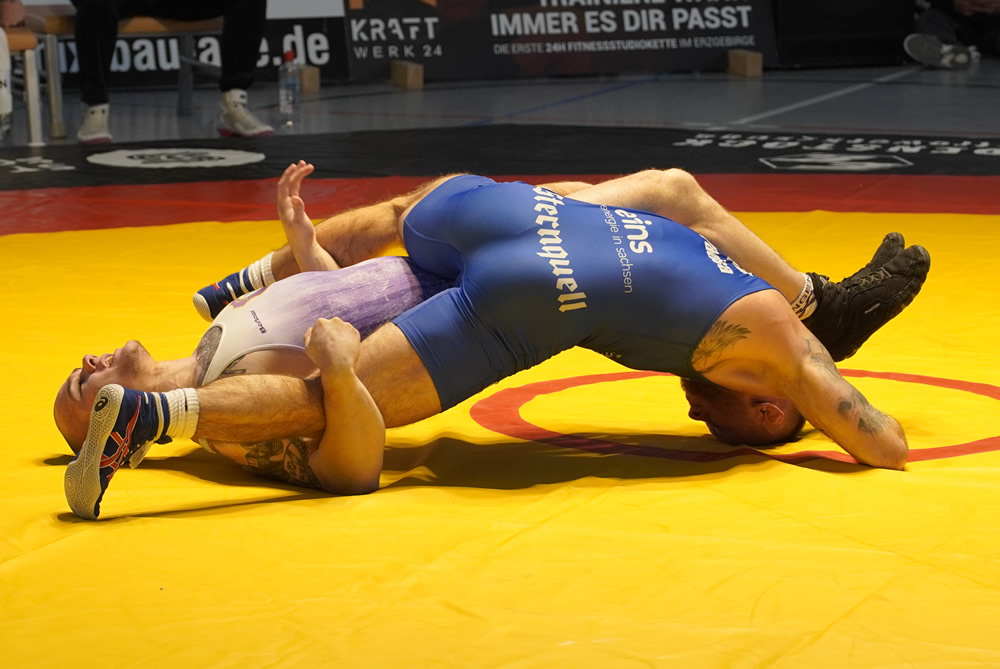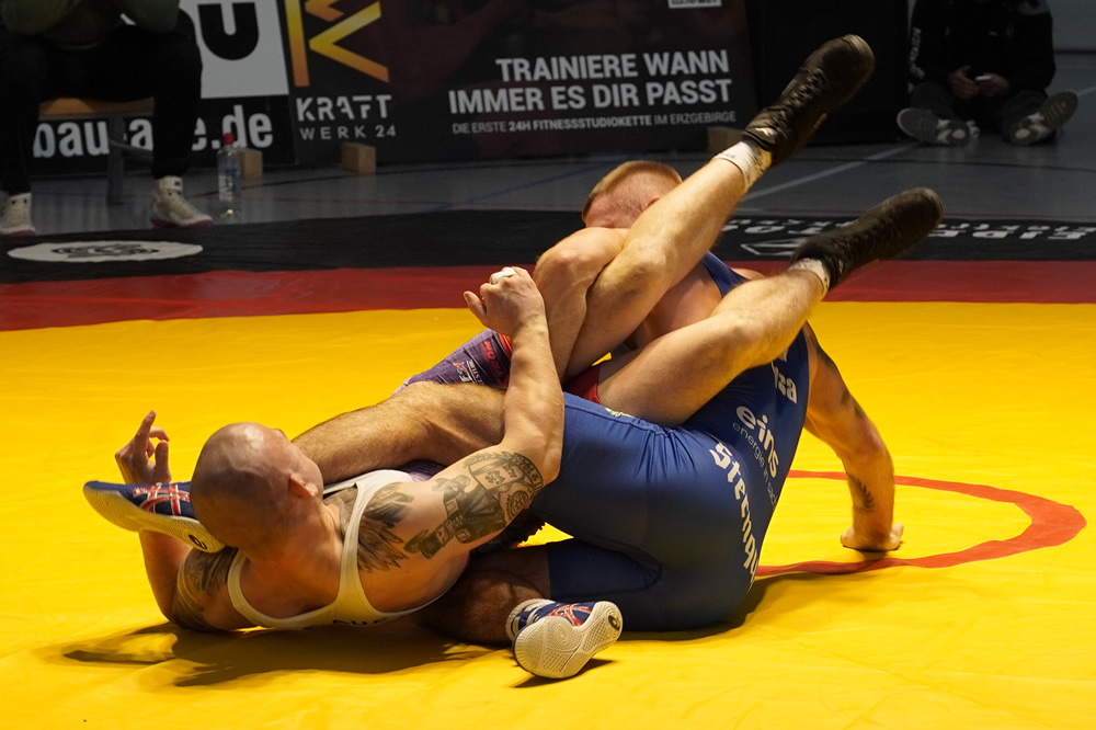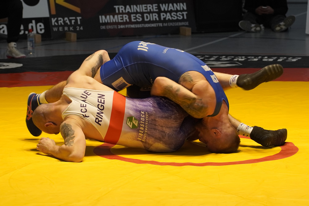 Zum Start in die zweite Hälfte des Kampfabends holte Aue etwas auf, Arkadiusz Kulynycz (86 kg/GR) der im Zweitligateam nicht zum Einsatz kam, rückte in die FCE-Reserve und bezwang WKG-Mittelgewichtler David Adler nach viereinhalb Minuten mit 17:1 Punkten durch technische Überlegenheit. Mit Przemislaw Piatek (75 kg/GR) stellte Aue II dann gleich noch einen starken polnischen Ringer, gegen den Max Schmalfuß tapfere Gegenwehr lieferte und nur ein 1:3 zuließ, was den Gastgebern gerade einmal einen Mannschaftspunkt einbrachte.