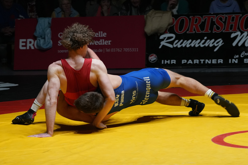 Zum Start in die zweite Hälfte des Kampfabends sorgte Hannes Thiesler (86 kg/FR) mit einem 4:0-Punktsieg über Aziz Golmohammadi für den 5:8-Anschluss. Andrei Zugrav (75 kg/FR) setzte sich mit 7:6 in einem kampfbetonten Duell gegen Fernando Mahmoud durch und Sid Wetzel (80 kg/GR) brachte mit einem 17:2-Überlegenheitserfolg gegen Sean Kauerhase die WKG Pausa/Plauen gar mit 10:8 in Führung. Doch Werdau hatte noch zwei Asse im Ärmel, gegen die an diesem Abend nichts zu gewinnen war. Chris Militzer (75 kg/GR) unterlag gegen den tschechischen Auswahlringer Michal Novak auf Schulter und Salakh Dadaev (80 kg/FR) musste eine vorzeitige 2:18-Niederlage gegen Ansgar Reinke quittieren. Damit sammelte der AC Werdau in den letzten beiden Kämpfen 8 Punkte zum 16:10-Endstand.